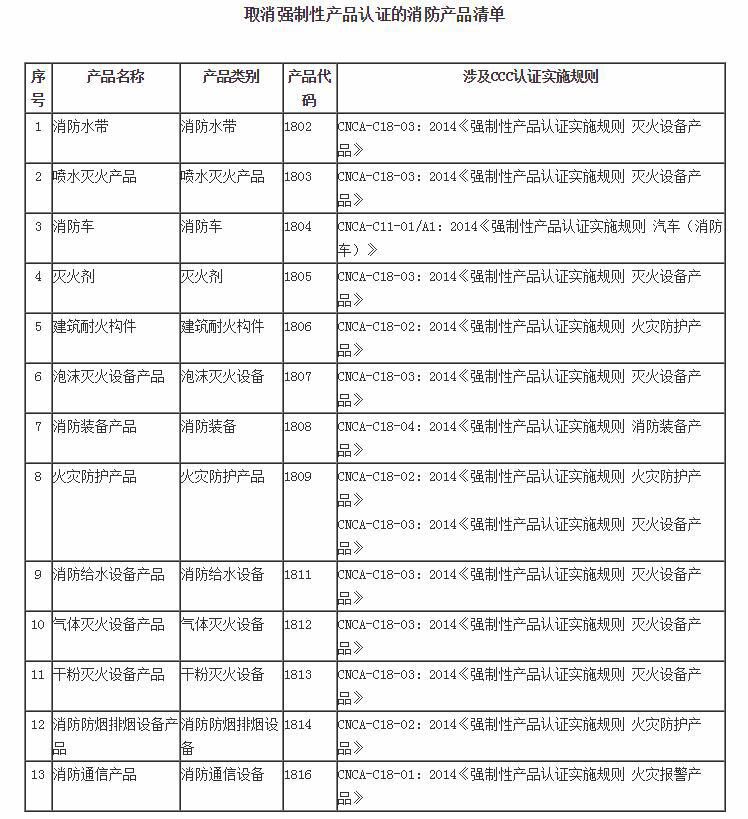 附件一:關于落實《國家市場監(jiān)督管理總局 應急管理部關于取消部分消防產(chǎn)品強制性認證的公告》的通知