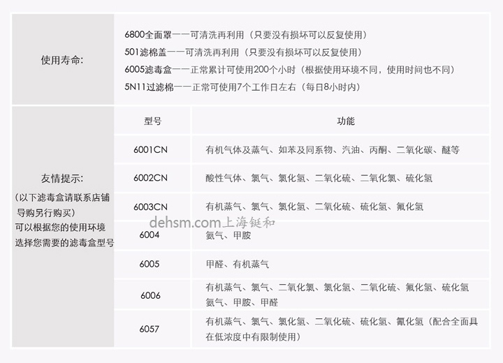 2.防毒:3M6800全面罩配備3M6000系列濾毒盒可提供對某些有害氣體的防護(具體濾毒盒的選擇需要結合現場有毒氣體的性質)