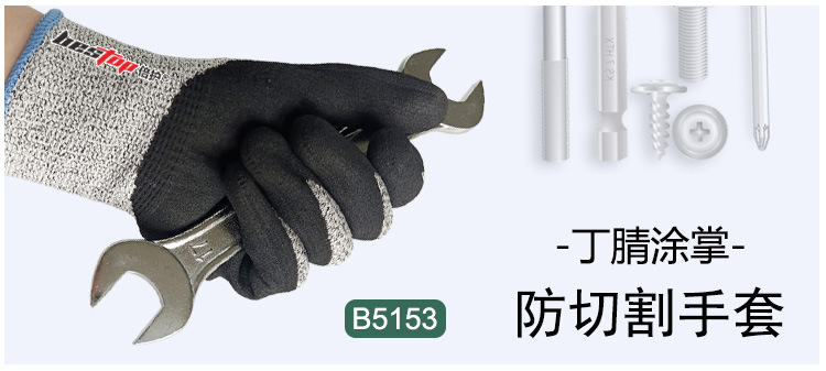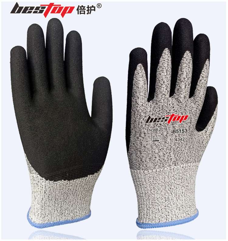 bestop倍護(hù)B5153耐磨防滑防割手套丁腈涂掌,EN388:2016防割3級(jí),高彈力,貼合手掌,防滑耐磨。