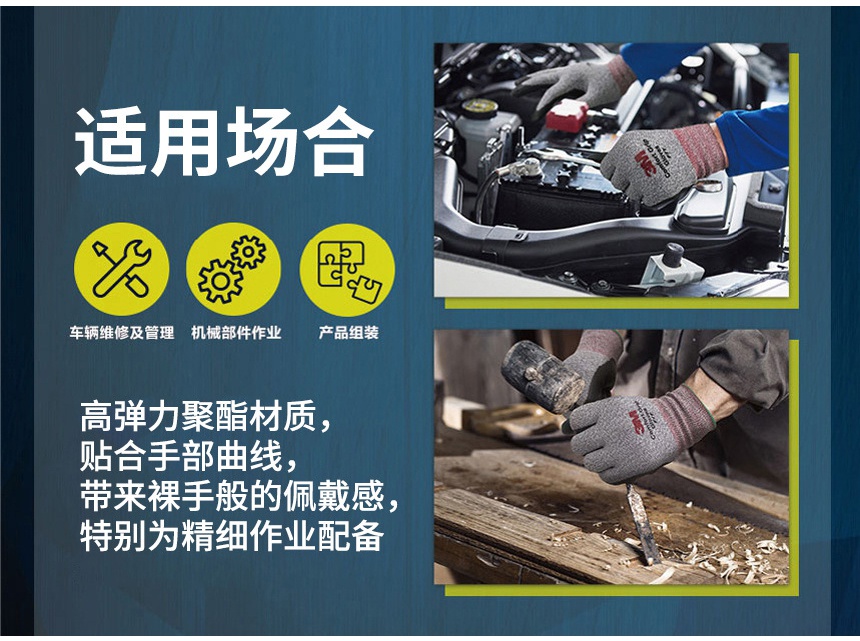 3M防割手套采用高性能織物制造,5級防割具備優異的防割耐穿刺和抗磨系列性能。