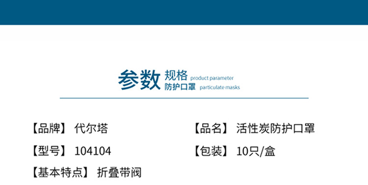 代爾塔104104活性炭防護口罩產品介紹: